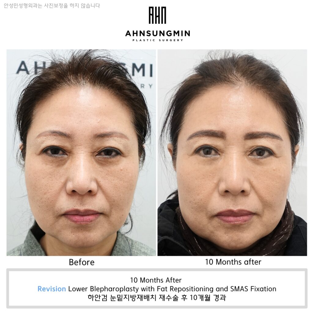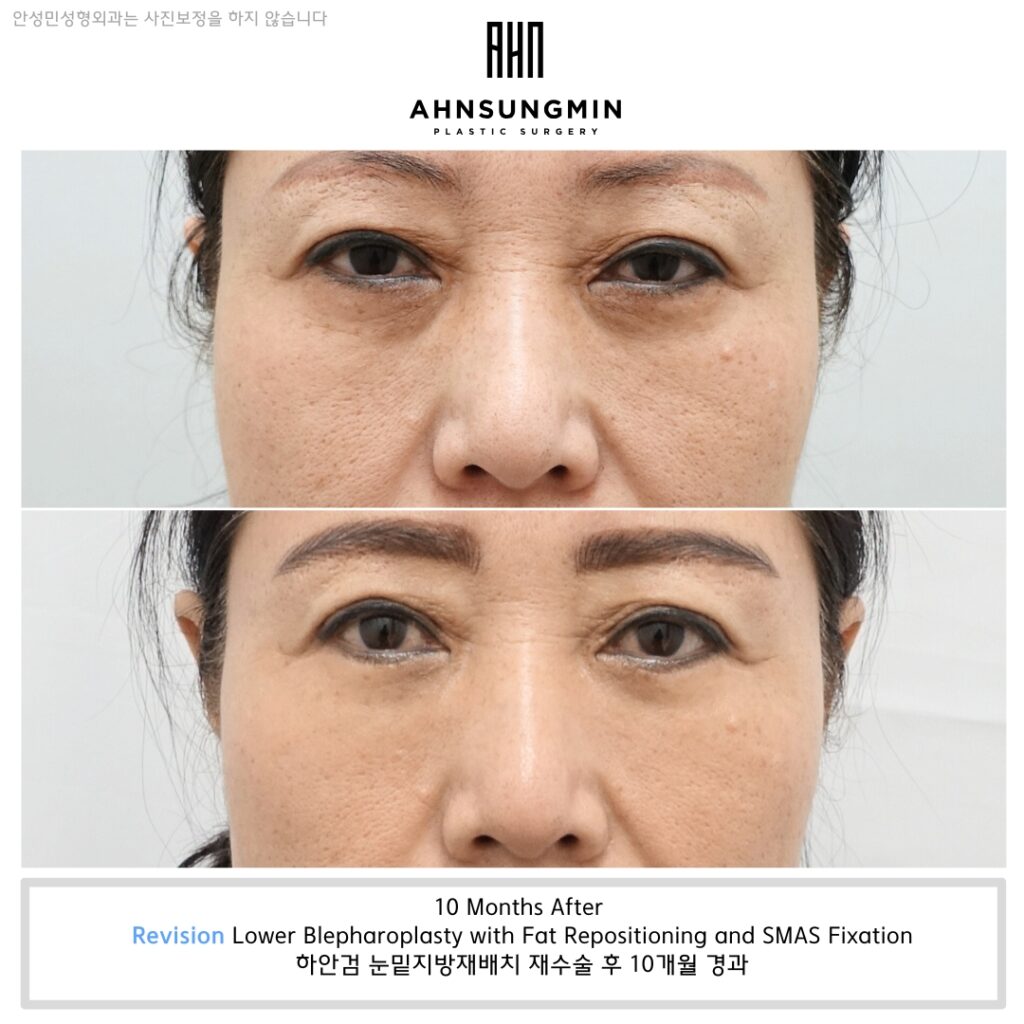 Evaluating the outcome of revision surgery also requires a broader perspective. A successful result is not defined solely by reduced bulging. It should be assessed by how naturally the under-eye contour flows in the frontal view, whether there is any discomfort during facial movement, how well the left and right sides harmonize, and whether the result remains stable over time. For this reason, before-and-after comparisons should be reviewed carefully from multiple angles rather than relying on a single photograph.